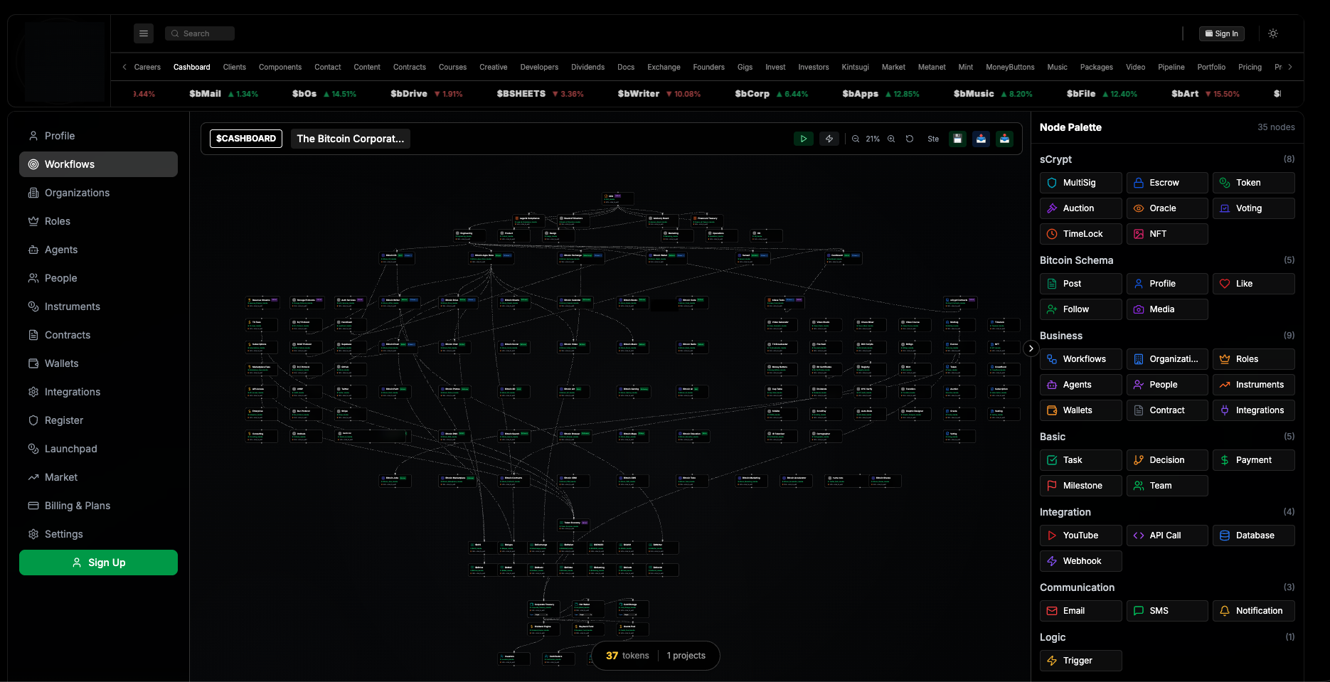 This essay articulates the structural design of The Bitcoin Corporation as an integrated, on-chain organism. It demonstrates how legal doctrine, technical primitives, and consumer-facing applications function as a single, coherent machine managed through the "Cashboard" interface.